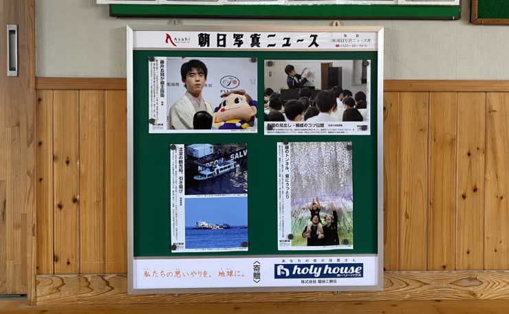 このたび弊社は、地元の基山小学校に「朝日写真ニュース」の掲示板を寄贈しました。