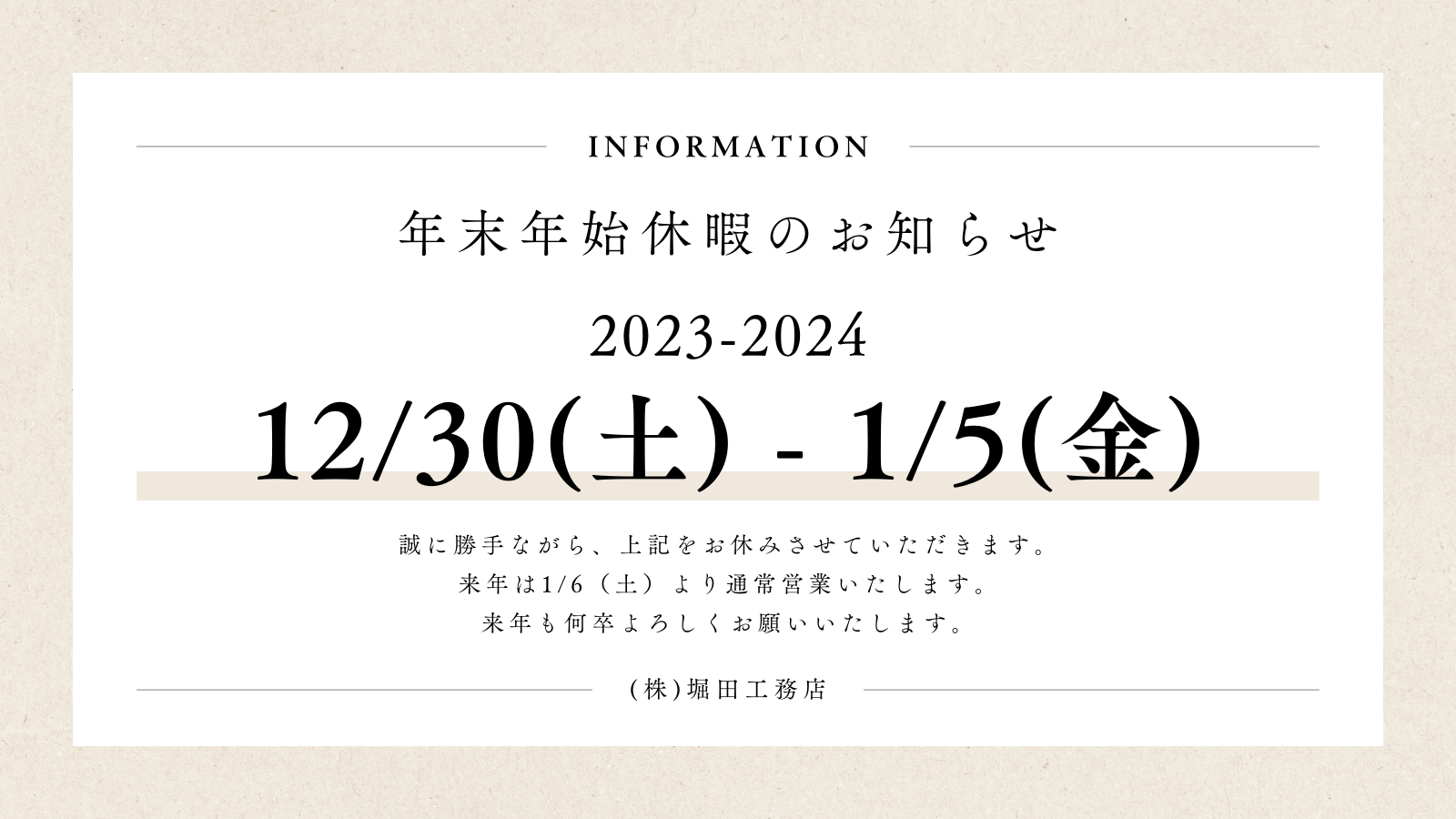 年末年始休暇のお知らせ 内で公開