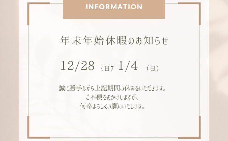 【年末年始休暇のお知らせ】
